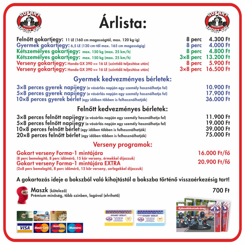 Kérd az alábbi linken vagy személyesen a gokart pálya pultjánál!